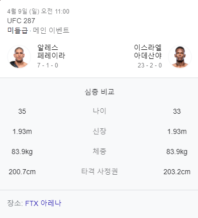 [일상/UFC] - [UFC 287] 페레이라 VS 아데산야 2차전이라니 라인업 미쳐 돌아감
