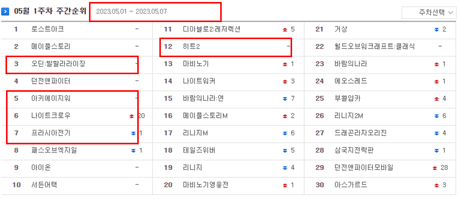 모바일 게임 매출 순위(23.05.07)