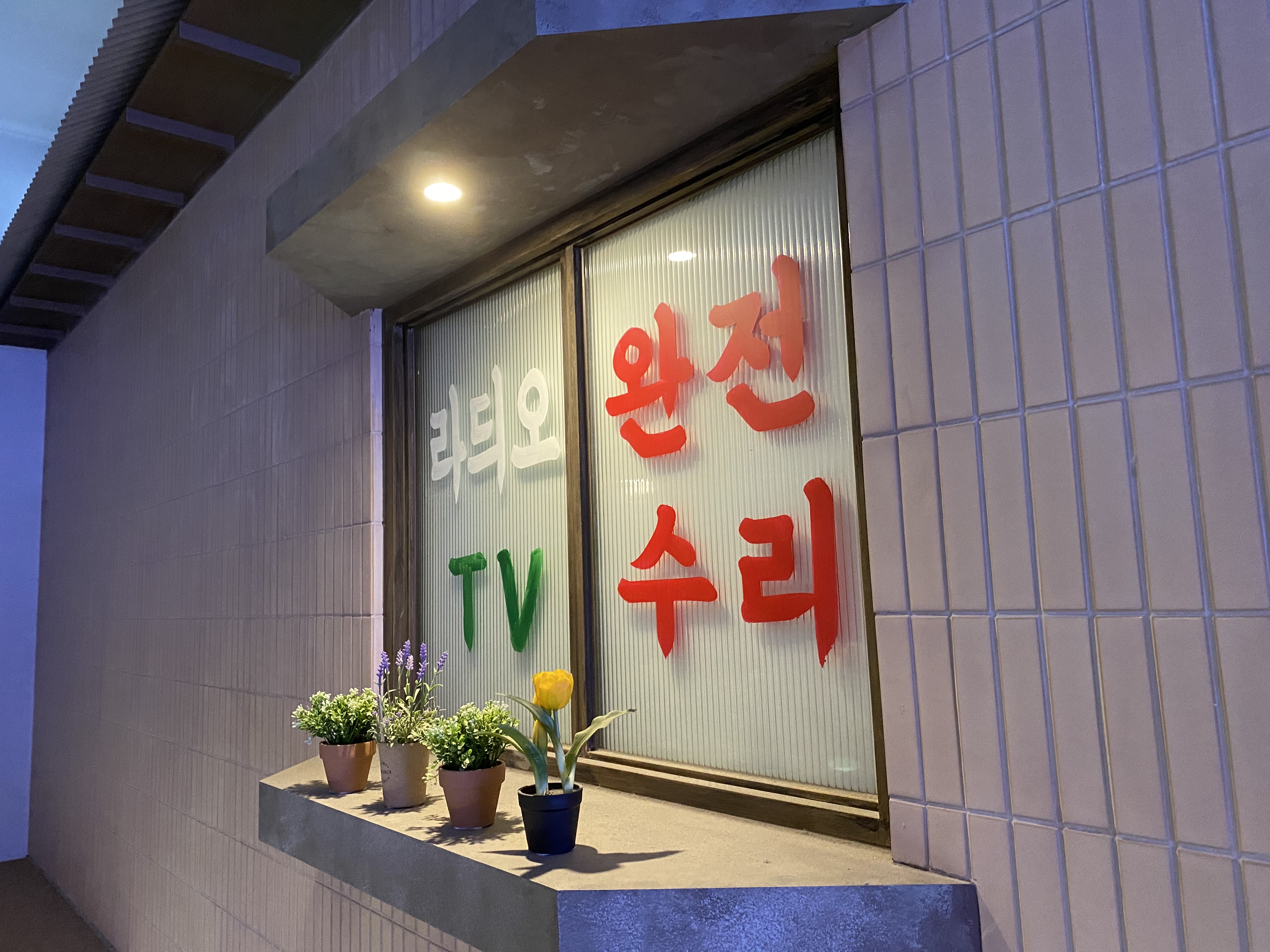 시장속에 있는 스타벅스이기 때문에 입구를 잘 찾아주셔야 합니다. 스타벅스 간판이 있긴 하지만 아주 소박하게 안어울리게 간판이 메달려 있기 때문에,, 주변의 레트로한 감성과 사뭇 다른 느낌의 스타벅스 입니다. 간판만 봐서는 안에 정말 있긴 한가 싶습니다. 일반적인 스타벅스 매장은 입구부터 크게 매장안쪽이 보일텐데요 그런것과는 사뭇(?) 다릅니다