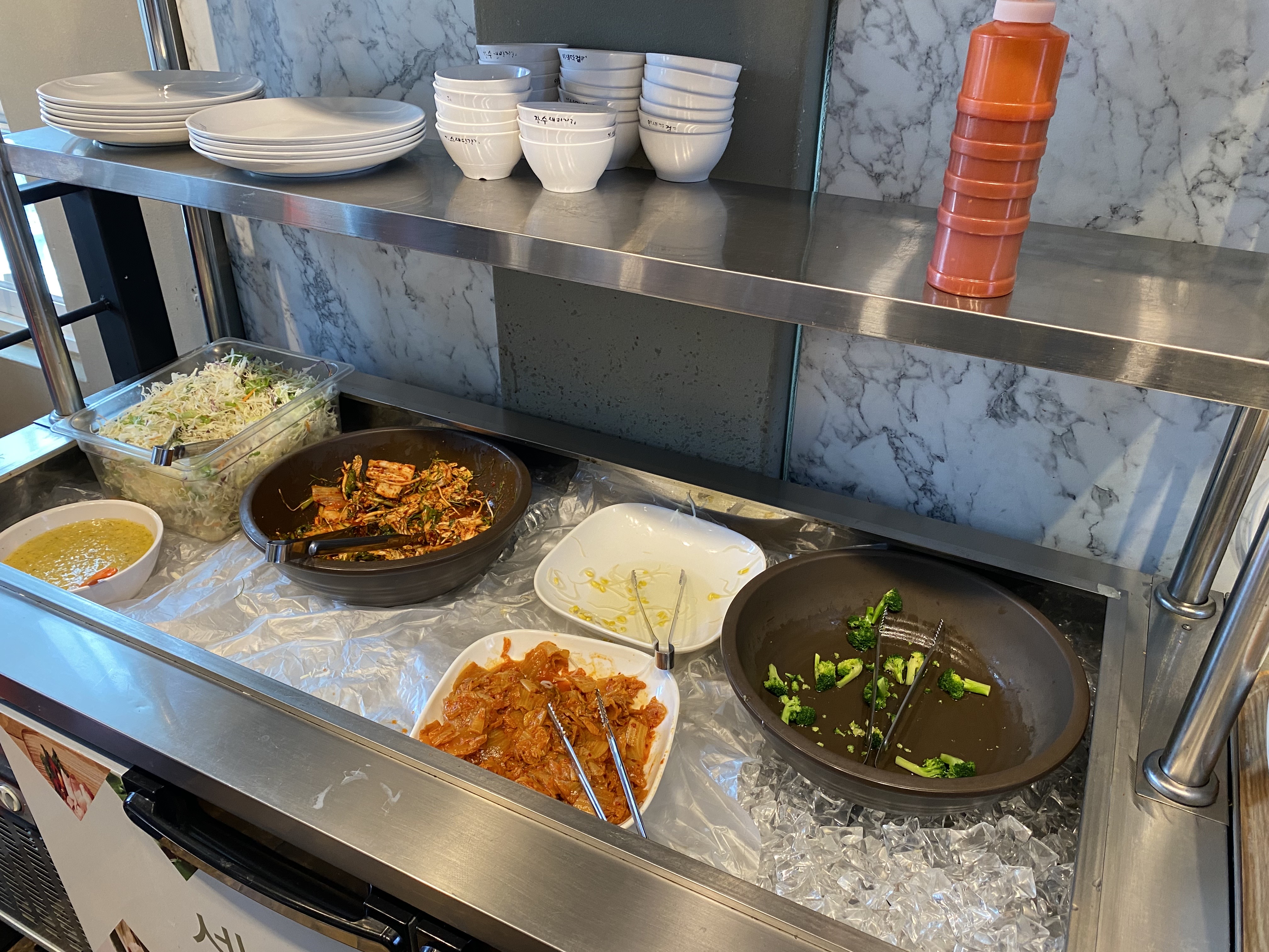 몇개 메뉴는 비어있지만(금방 채워주심), 두부 브로콜리 양배추, 건강챙기려면 꼭 주워 담아 줘야 할 메뉴들이 있으니 잘 챙겨주세요 그리고 맛집이라 회전율도 좋아 셀프 반찬 음식상태도 좋습니다